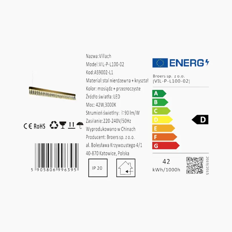 Villach to podłużna, elegancka lampa wisząca, która łączy połysk mosiężnych wykończeń z luksusowym blaskiem kryształów K9. Idealna do wnętrz w stylu glamour, klasycznym lub modern classic – subtelnie rozprasza światło, tworząc zjawiskowy efekt dekoracyjny.